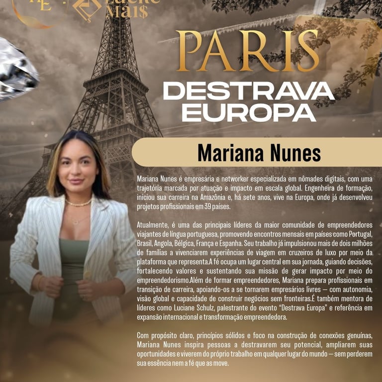 É uma imersão internacional em Paris para quem decidiu desbloquear mentalidade, imagem, comunicação e prosperar com estratégia, conexões e posicionamento de autoridade.
