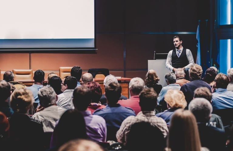 Seja em sala de reunião, auditório, hotel, igreja ou espaço cultural, criamos o ambiente perfeito para tornar a mensagem do autor viva e marcante.